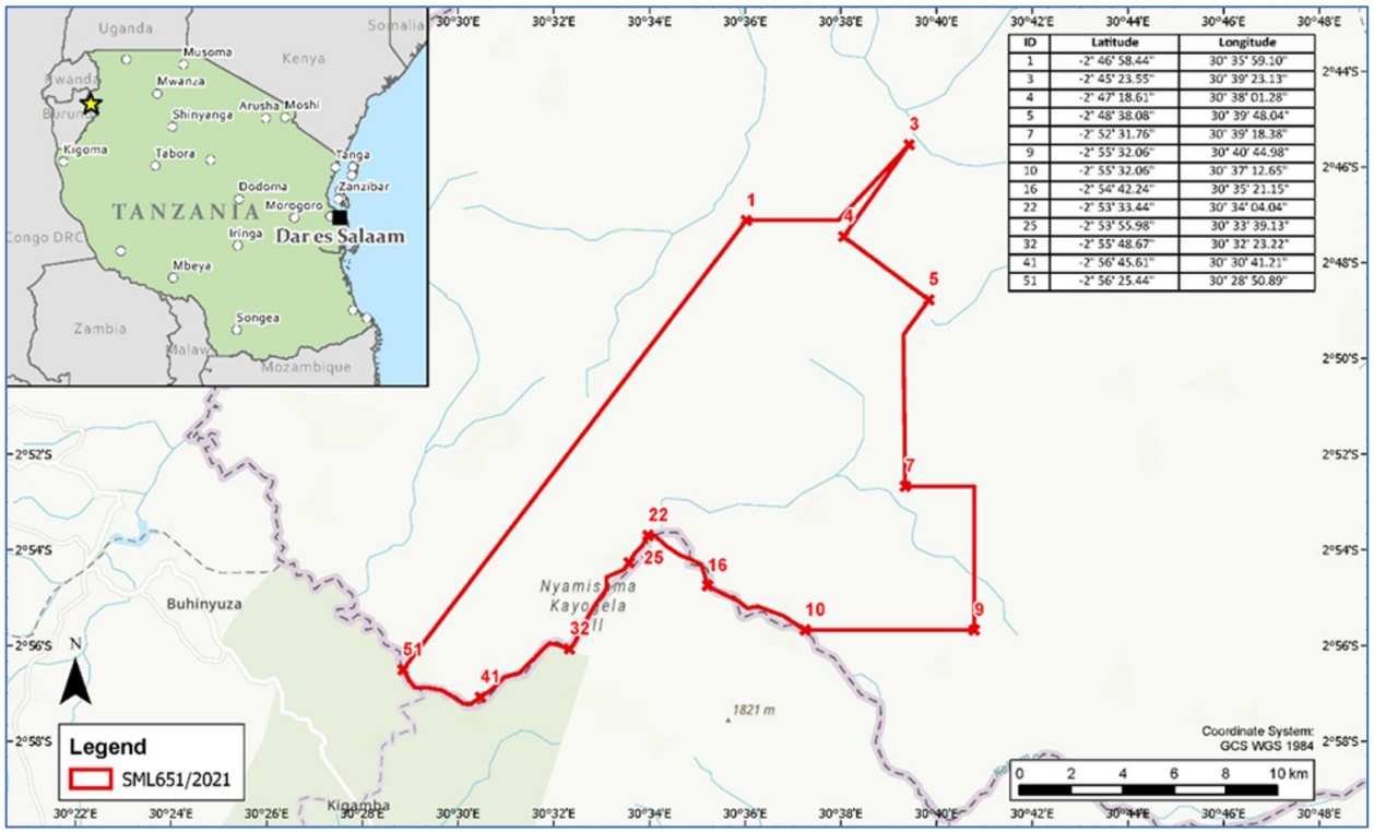 Figure 7: Map showing the location of the Kabanga Special Mining Licence area.