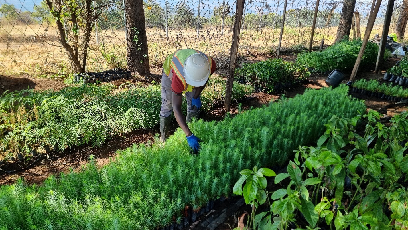 Figure 11:Attending to the tree-nurseries at Ndovu Camp. Once matured, these trees will be used to rehabilitate completed exploration drill pads.