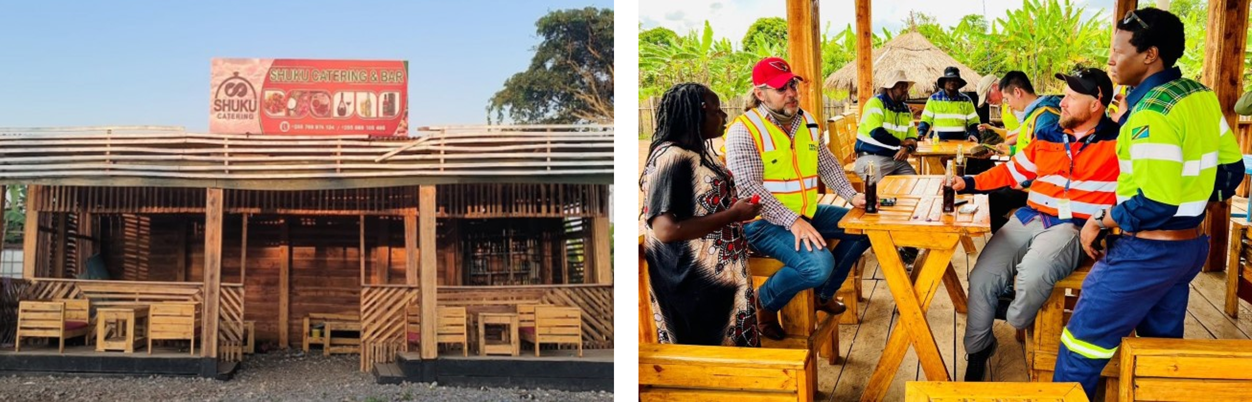 Figure 12: Lifezone’s Chief Operating Officer Gerick Mouton and members of the Lifezone team visiting a local café, Shuku Catering & Bar, that was recently constructed by a person that will be physically displaced by the Kabanga Nickel Project using proceeds from their resettlement compensation.