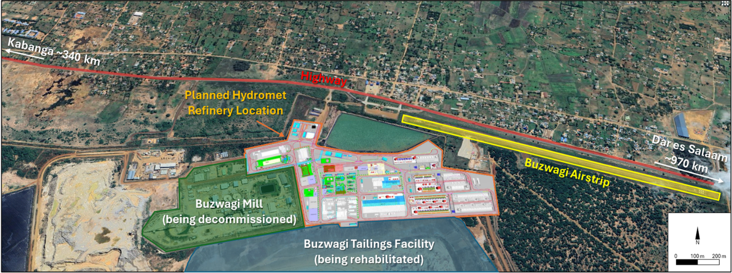 The Definitive Feasibility Study will contemplate truck transport of concentrate from the Kabanga site to the Hydromet refinery in Kahama, a distance of approximately 350 kilometers, with the produced refined nickel, cobalt and copper being sent via rail to the port of Dar es Salaam.
