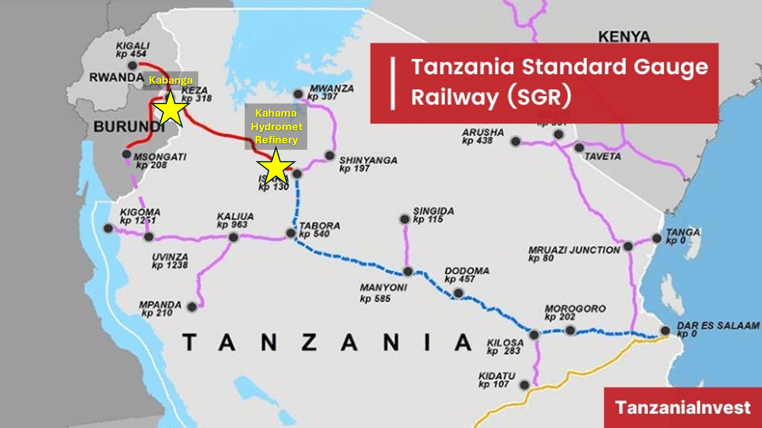 Future expansions of the Standard Gauge Rail system could include a branch to the neighboring country of Burundi, which would likely pass near to the Kabanga site and potentially eliminate the need for road haulage between Kabanga and the Hydromet refinery at Kahama.