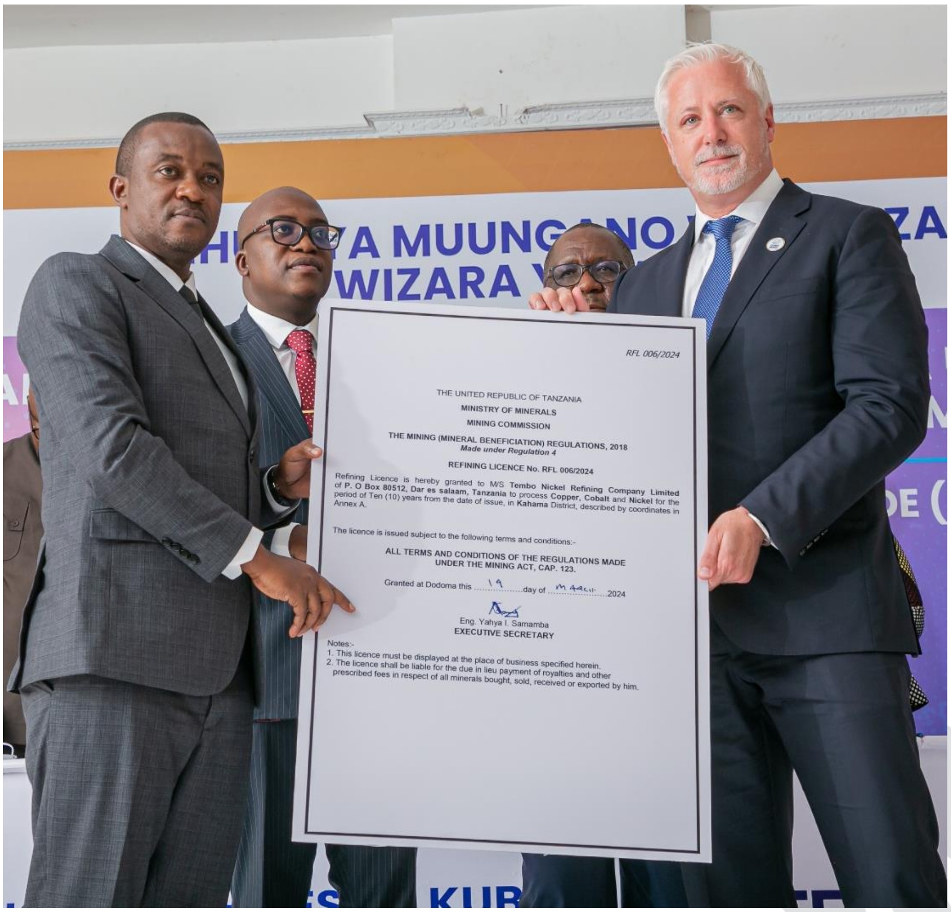 Lifezone received the Kahama Hydromet Refinery Licence from the Government of Tanzania, and Kahama will be located within a newly promulgated Special Economic Zone.