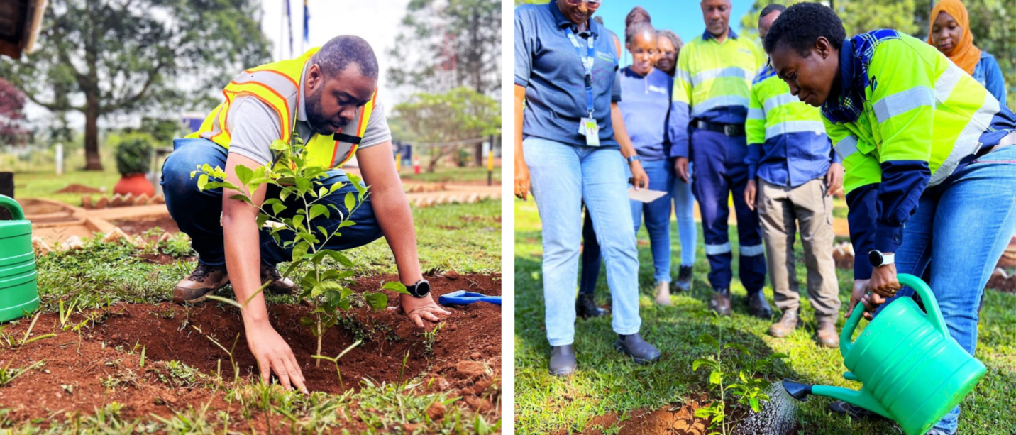 Figure 7: (Left) Tunzo Msuya, Tembo Nickel Environment Manager, planting a tree as part of the International Day of Forests, March 21, 2024. (Right) Rebecca Stephen, Tembo Nickel Kabanga Site General Manager, watering a tree just planted.